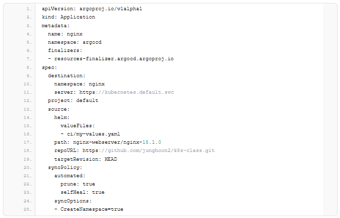 Dalam lingkungan operasi praktis, sering kali opsi 'automated' dinonaktifkan seperti di atas. Pengguna selalu memeriksa 'Diff' secara manual untuk memastikan adanya masalah dan mengikuti proses penerapan ke cluster yang sebenarnya.