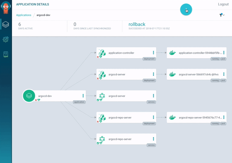Dengan cara ini, ArgoCD menyinkronkan status yang tercermin dalam sumber Git dengan status Kubernetes yang sebenarnya. Semua perubahan dilakukan tidak melalui perintah atau sumber lokal secara sembarangan, tetapi hanya dilakukan di repositori Git terpusat.