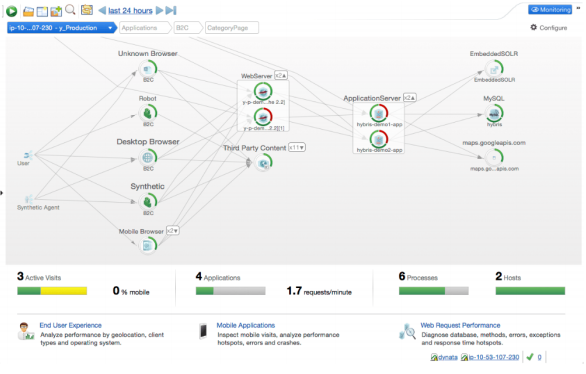 APM Jennifer memiliki beberapa tampilan di dashboarnya salah satunya khusus untuk aplikasi Toplogy Maps, sedangkan dashboard NewRelic hanya menampilkan ringkasan response time aplikasi dan trouhtput serta tingkat kesalahan,Dynatrace memperkenalkan beberapa dashboard berbasis web untuk kliennya.